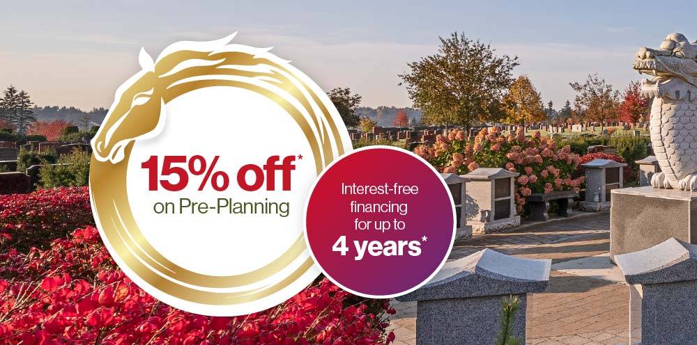 This Ching Ming, Pre-Plan with Arbor Memorial and take off the burden off from those you love. During this special time, take advantage of our exclusive discounts: