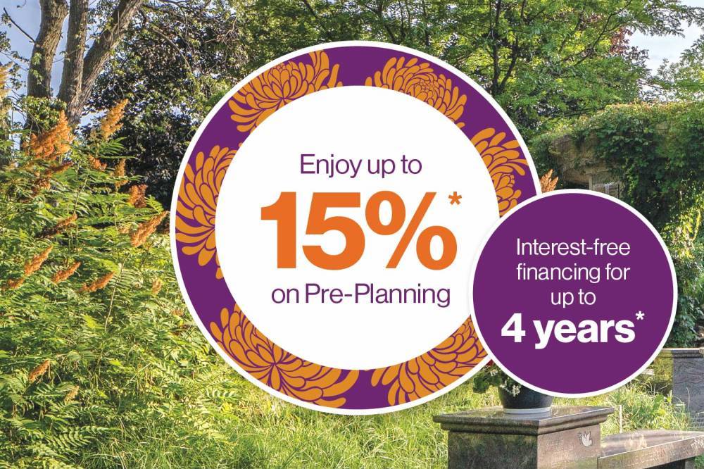 - 15% savings complete cemetery arrangements and complete funeral arrangements*