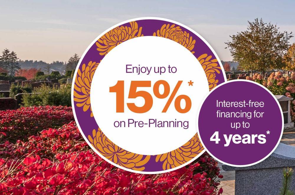 - 10% savings on completion of Cemetery Arrangements for existing lot owners*